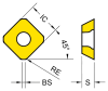 Радиус скругления при вершине (RE), мм